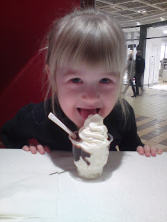 Nellie är inne i en riktig mode-period just nu. Det ska bara vara klänningar, kjolar och tights. Byxor vägrar hon på sig och mjukisar är skitfult, enligt henne själv. Så alla jeans och brallor är just nu undanlagda i klädkammaren. Eftersom det slits rätt rejält nu på de få tightsen som finns så åkte vi upp, mor och dotter, till A6 och gick på jakt. Vi åkte hem med ett par gympatossar, tre par fingervantar och två styck pyjamas till lilleman. Men inga tights!